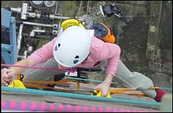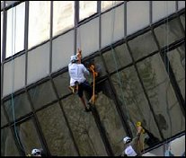de 3 largos" Inicialmente marcada para o dia 5 de Janeiro, seria adiada 2 semanas devido ao mau tempo. O dia 19 de Janeiro de 2003, embora precedido de um daqueles dias de chuva intensa que têm marcado este Inverno, acordou limpo, anunciando aquele que seria o mais mediático de todos os acontecimentos, não trágicos, a envolver escaladores desportivos desde que me entendo. Foi com elevada ansiedade que fui vendo aproximar-se o grande dia, até porque, por imperativos de agenda, fiquei entregue à função de ama seca, a cuidar da minha pequena Madalena e da restante lide doméstica, pelo que não tive outro remédio senão acompanhar a tarde televisiva da SIC. A televisão esfregou o ecrã estremunhada quando premi o botão 3 do comando às 14:00h de um Domingo de Sol. Não costumo fazê-la trabalhar ao fim de semana, muito menos com luz do dia. Poucos minutos depois (ainda só tinha dobrado 2 ou 3 pares de meias) aparecem os apresentadores da emissão, sobre os quais me demito de fazer qualquer tipo de comentário, por gratidão à estação que lhes dá abrigo. Devem ter tentado explicar o que se ia passar, mas eu estava distraído pela quantidade de gente conhecida que se via atrás deles, em movimentos nervosos que não descobri se eram de frio ou necessidade de um lavabo. Sei bem o que custam aqueles minutos de isolamento que antecedem a entrada em competição, sobretudo se a casa de banho não está ao alcance, como parecia ser o caso. Via-os de luvas calçadas, com 2 pares de ventosas penduradas nos arneses. Não tardou muito a soar o apito que abriu aquela louca corrida. O mote desta prova era: “Quer levar um Rio para casa? Largue o balde e traga as ventosas”. A ideia parecia mais disparatada do que veio a verificar-se e consistia em escalar a Torre 1 das Amoreiras recorrendo a ventosas de vidraceiro. Dir-se-ia que o arquitecto Taveira, quando desenhou o edifício tinha no caderno de encargos uma nota apontando para uma competição de escalada a realizar alguns anos mais tarde. Apenas foram necessários alguns truques da organização para tornar a torre escalável em tempo televisivo. As medidas eram as exactas para extenuar o mais forte dos escaladores nacionais: cerca de 75 metros no total, com um subprumo de 3 metros quase no final. Se tivesse sido desenhada de propósito não seria melhor. A estreia desta bizarra prova coube ao Leo, ao Fred, ao Catita e ao