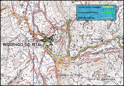 O Reguengo do Fetal é uma povoação que fica entre a Batalha e Fátima. Para quem venha pela auto-estrada Lisboa Porto, terá que sair na saída de Fátima, seguir as indicações para a Batalha. Quem viaje pela EN1, deverá sair na Batalha e seguir as indicações para Fátima. Quando surgir a indicação para o Reguengo do Fetal, segue-se até ao centro da povoação, um largo com uma fonte e uma simpática pastelaria onde podemos abastecer-nos de farnel. Depois sobe-se em direcção ao cemitério. Passado este, segue-se pela estrada de Terra batida até às falésias. |